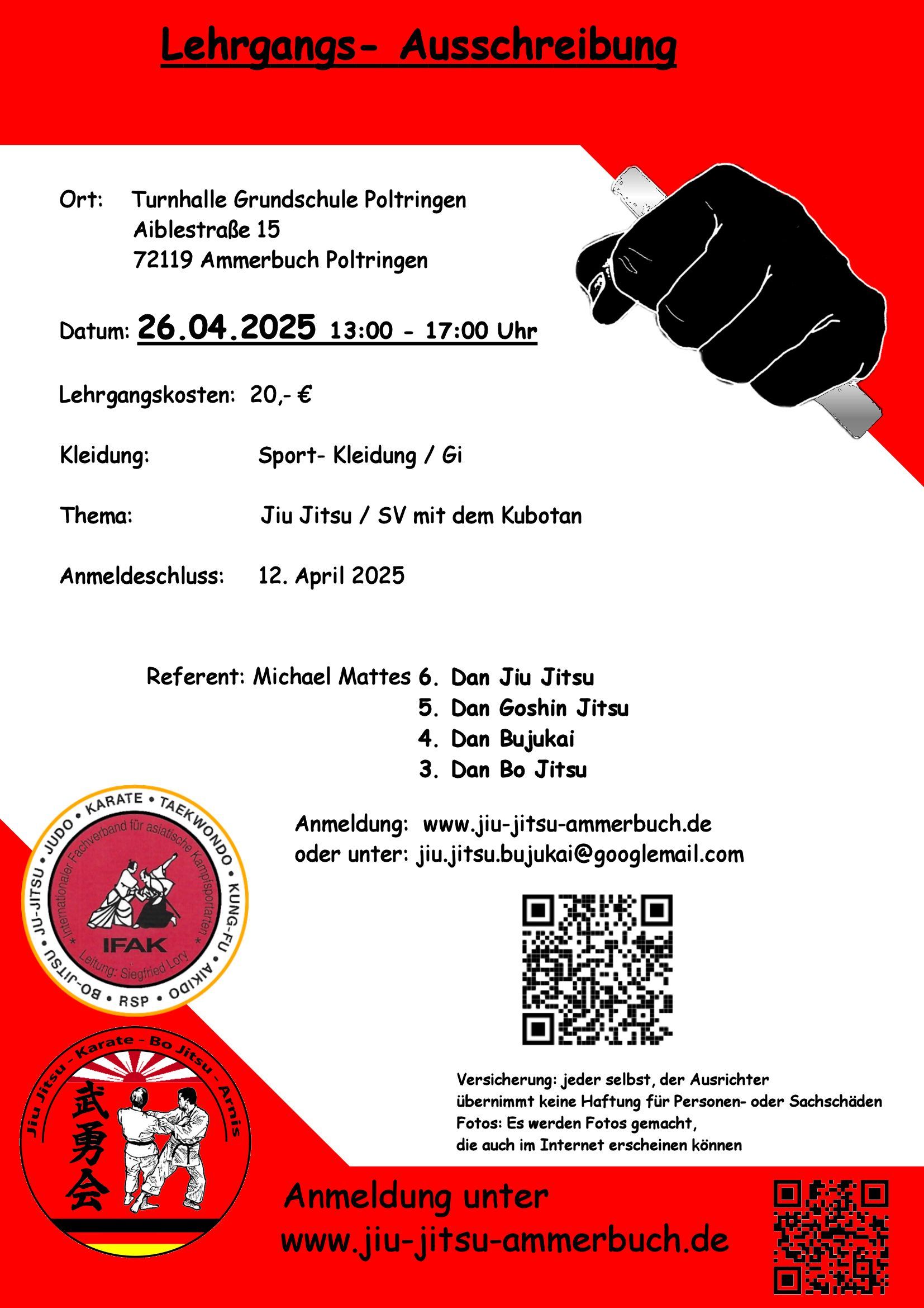 Super das du dich zum SV mit dem Kubotan Lehrgang am 26.4.25 angemeldet hast.