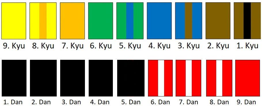 Dabei haben die Farben der Budo-Gürtel aus der Tradition noch folgende Bedeutung: